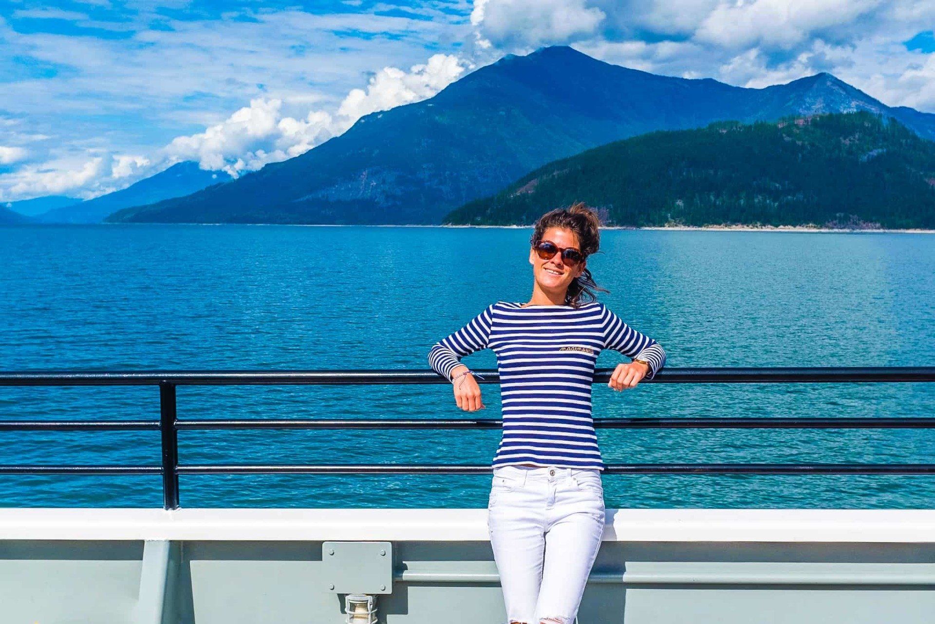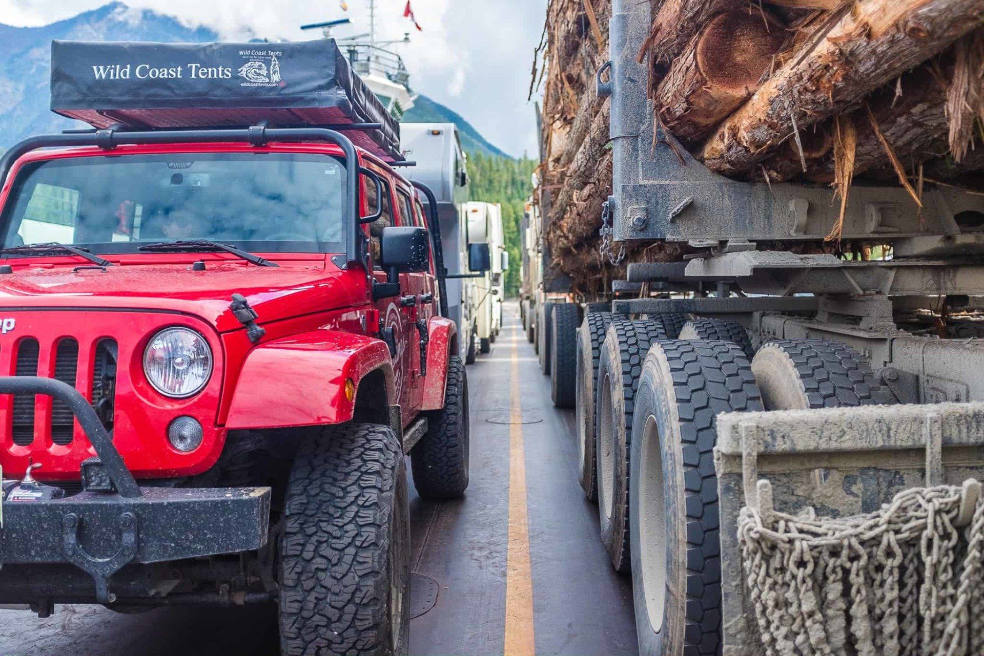 Pour atteindre Revelstoke, il nous faut prendre un inland ferry qui rejoint les deux extrémités du lac. C’est plutôt marrant de monter à bord du bateau directement avec notre Jeep. Notre voisin de gauche est un immense camion transportant du bois et sur notre droite, le lac et les montagnes nous éblouissent toujours autant. Cette traversée, c’est un mini-voyage dans le voyage.