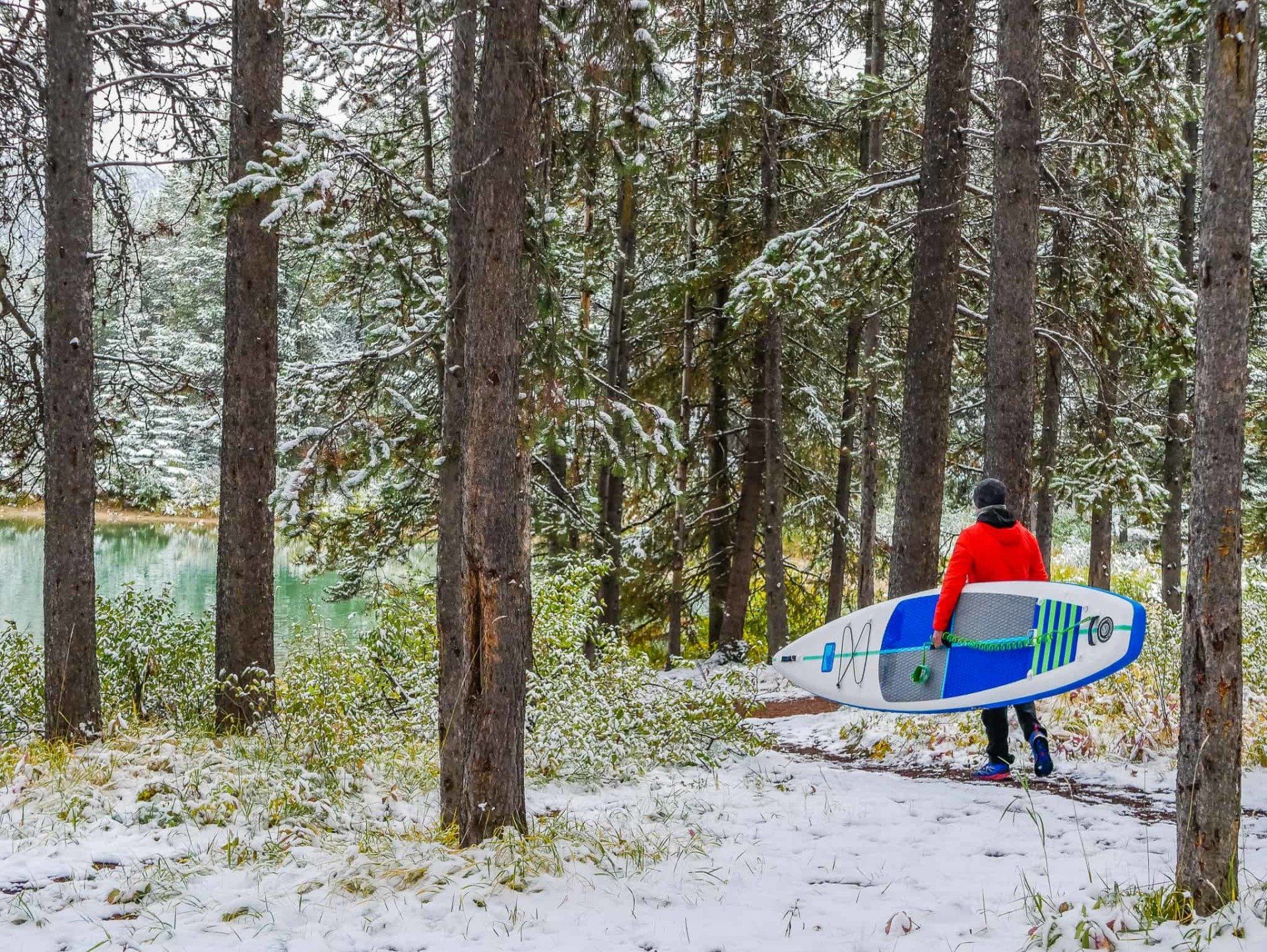 Nous passons la matinée entière à nous balader, à sortir (brièvement et courageusement) les paddles sur les lacs gelés et à nous réchauffer dans la Jeep en suivant.