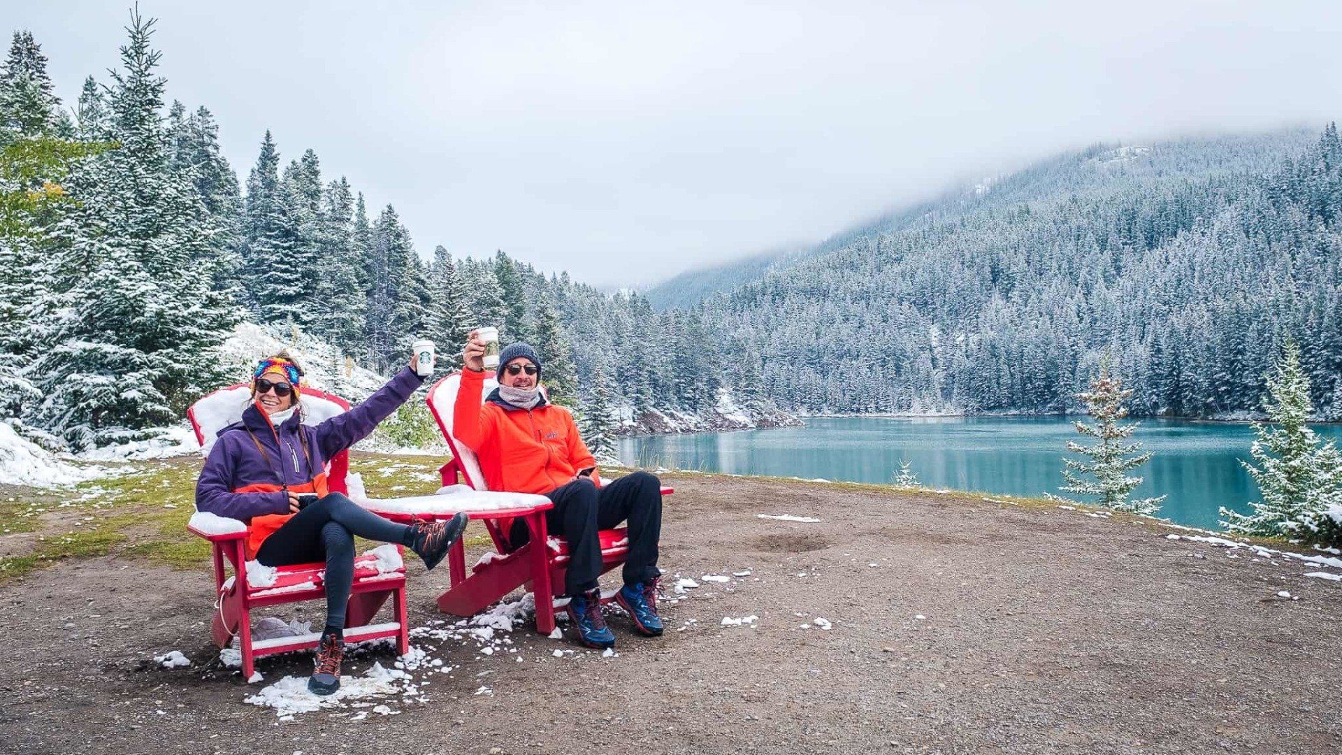 Nous arrivons sur le fameux “Lac Louise” sous des tonnes de neige et c’est simplement merveilleux. Incroyable (pour un 13 septembre) et merveilleux. Plus que ça, c'est féérique.