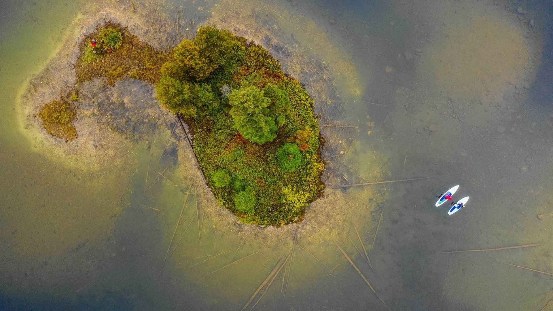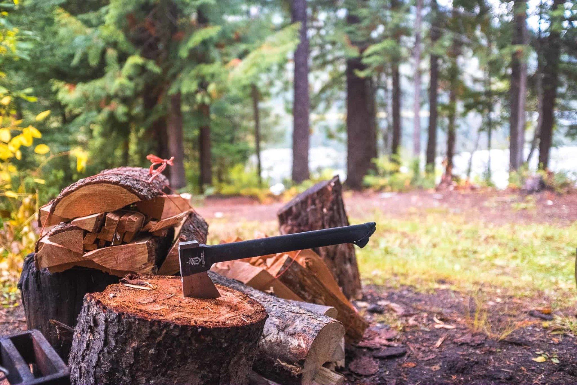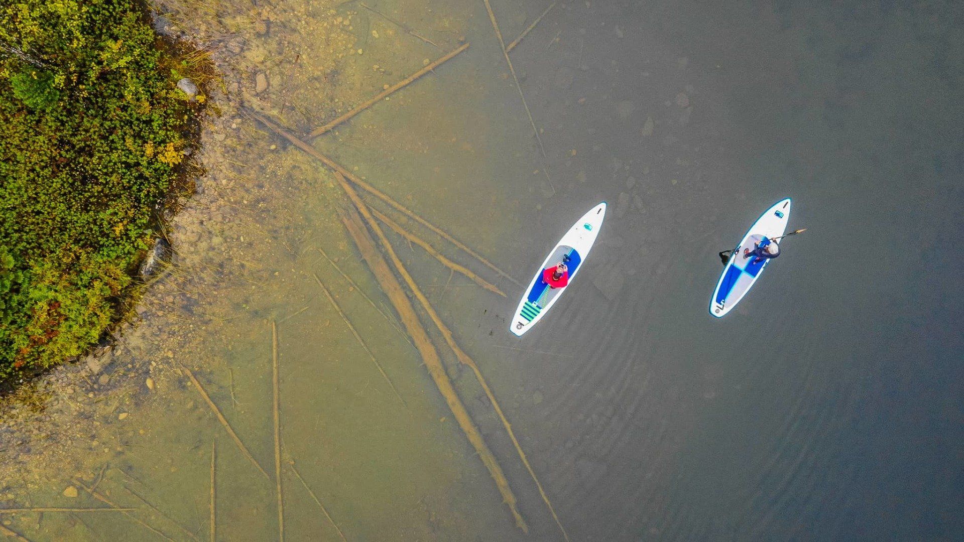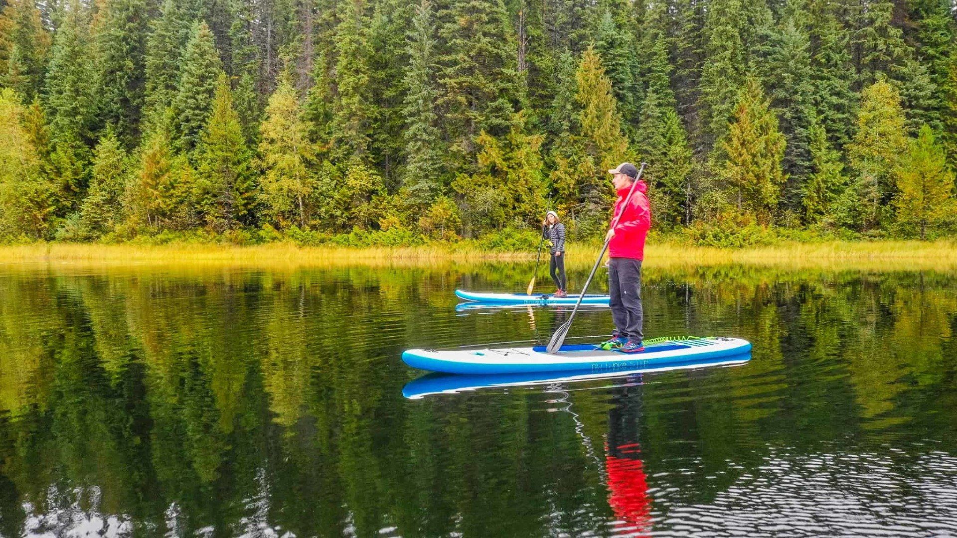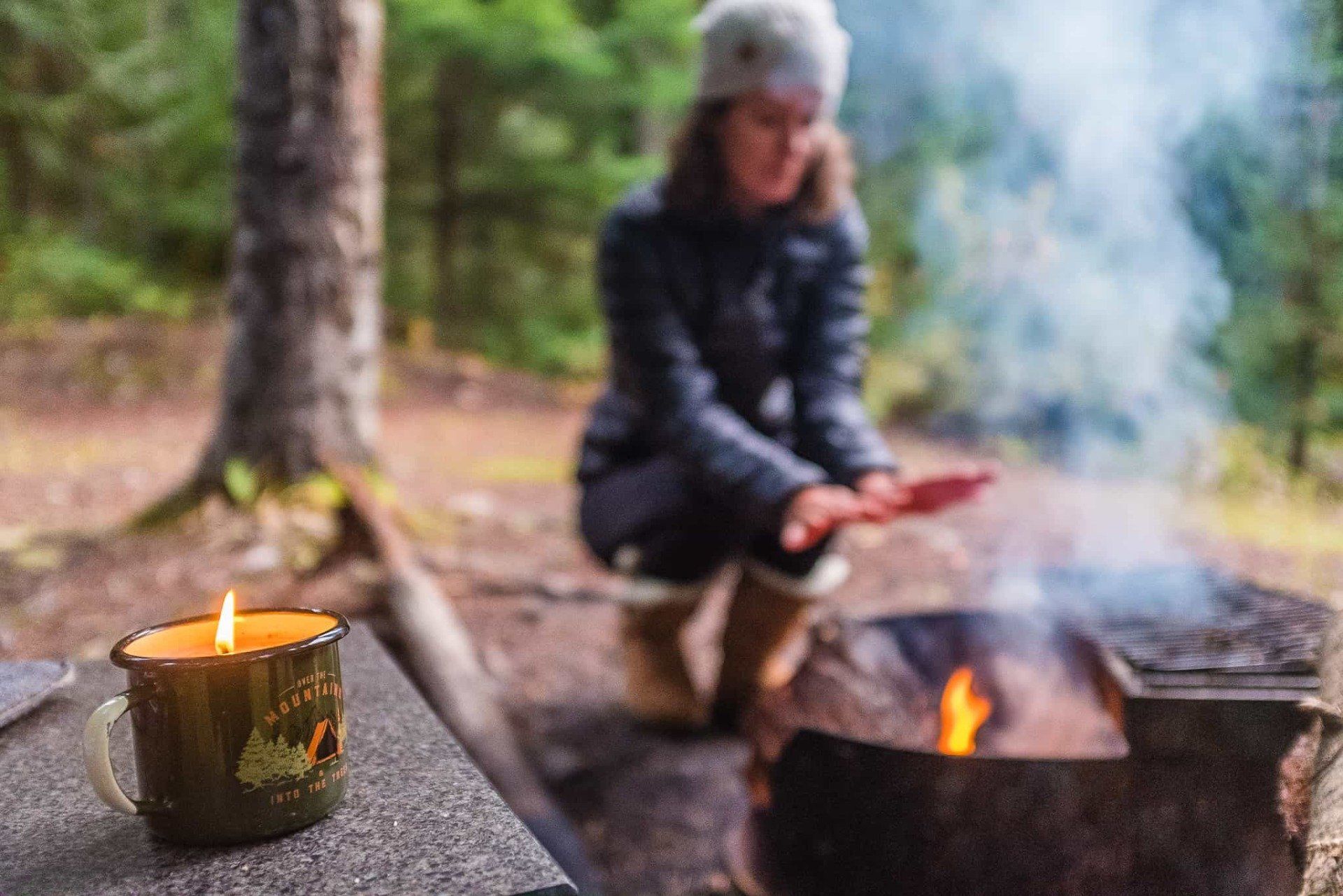 Beaucoup de pluie, un gros lac, des paddles, une tente et un feu de camp.