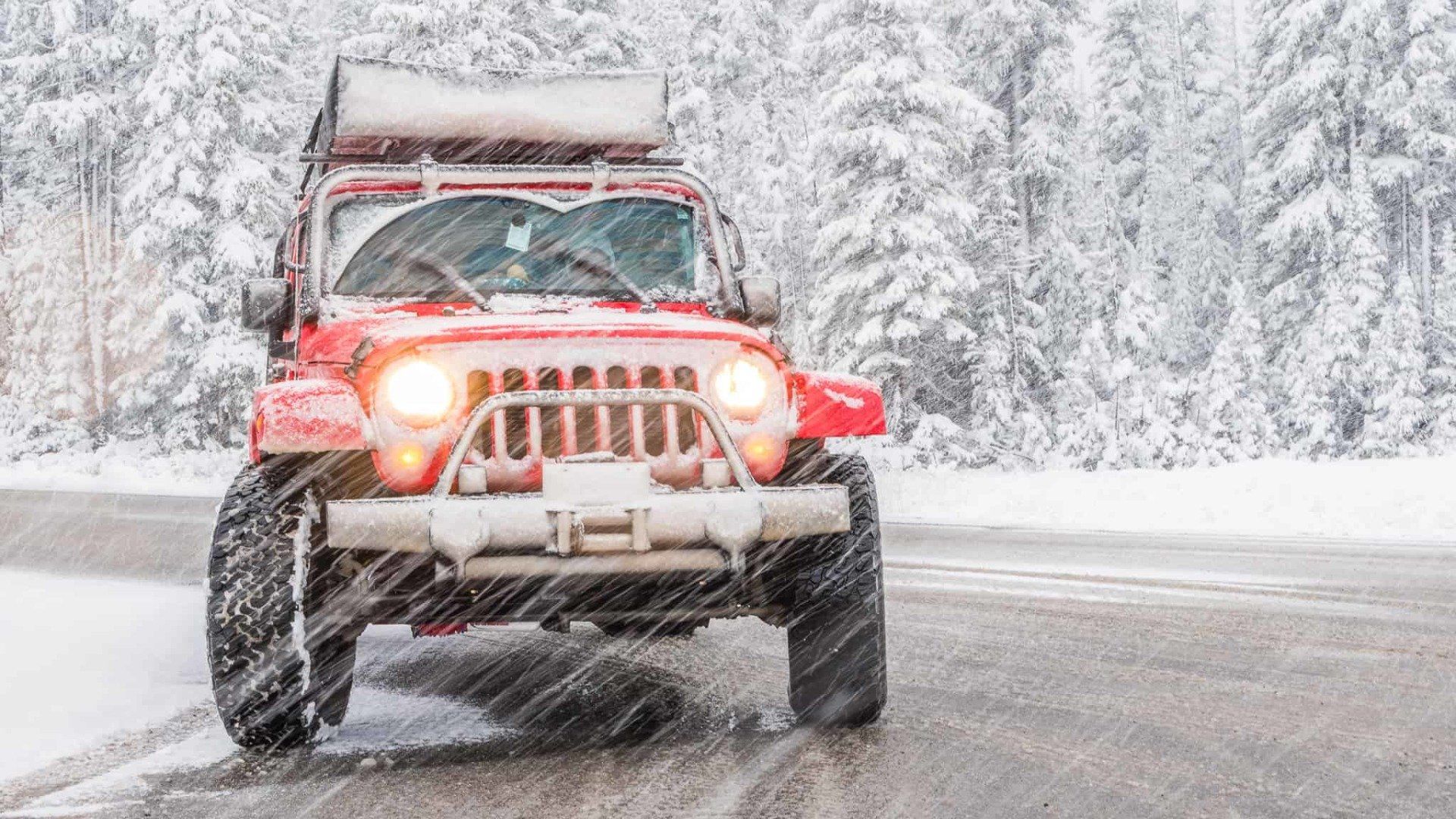 Les flocons fouettent la pauvre petite Jeep et nous avançons au pas (et en mode 4x4) sur la route recouverte d’une épaisse couche blanche que les chasses-neige s’évertuent à évacuer.