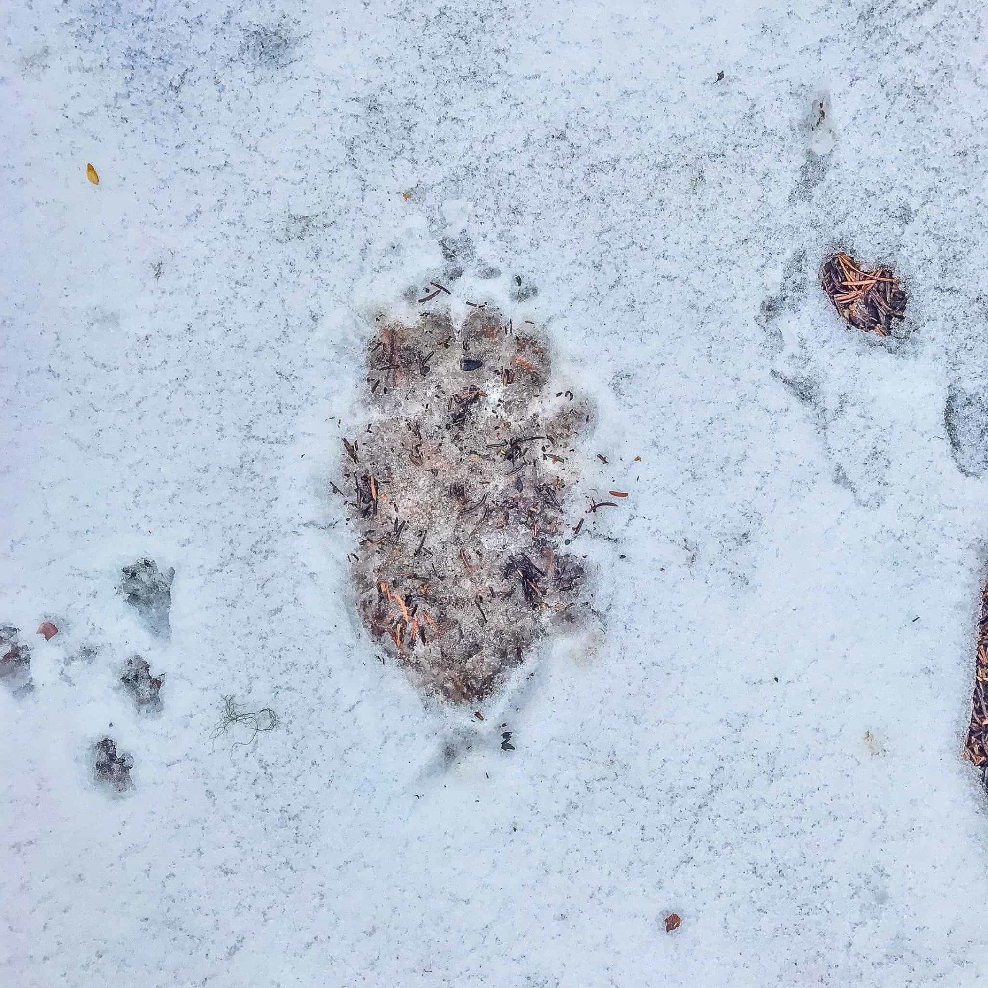 L’ambiance est paisible, relaxante et détendue… Jusqu’à ce que l'on tombe sur des GROSSES traces de pattes dans la neige. Bon… À priori ce ne sont ni des pattes d’oie, ni des pattes d’élan, ni de renard, ni de loup… Mais bien d’un gros nounours