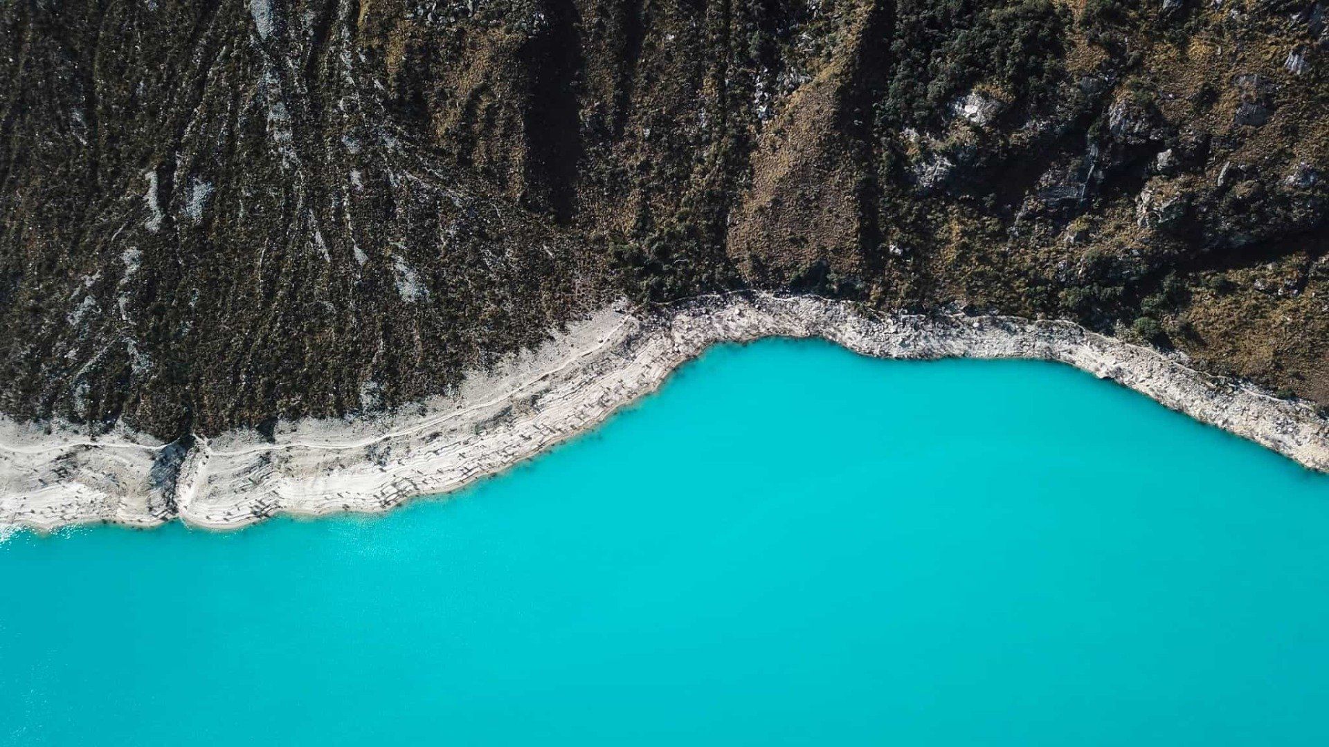 Sur le parking, le jeune péruvien présent nous informe que la balade dure en moyenne 3 heures. Ok! Il n’y a pas un nuage, le lac est d’un bleu turquoise impressionnant… et nous nous engageons sur le chemin qui contourne ce dernier.